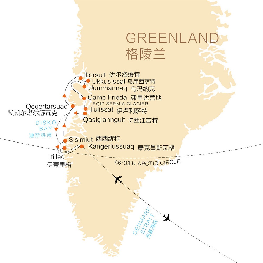 在冰山与峡湾中航行,捕捉极地生灵的身影,在午夜阳光里行走,拍摄最真实的北极。造访全球最大岛屿的核心地带,结识当地因纽特人,彻身了解地球极地的原始文化。