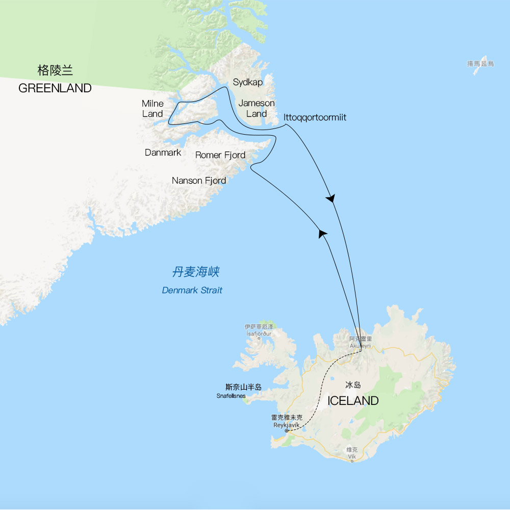 今天我们会途径【Volquart Boons海岸】,其被冰川雕刻深划得凹凸不平的面貌将让你印象深刻。如天气和海面状况允许,我们可能会在早上乘冲锋舟在冰川之前巡游,并且在Måne冰川附近登陆【丹麦地】。我们可以在这里找到被遗弃的200年前的人类定居点遗迹,包括夏季石质圆形建筑、冬天居住的建筑和以前防熊储肉架。