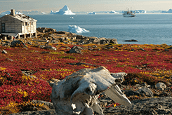 早上我们在【詹姆森地】南岸的一个咸水湖登陆,除了之前遇见过的麝牛们以及各种涉禽,你还有可能在这里上找到恐龙远古时留下的足迹。下午前往【伊托科尔托米特】参观。伊托科尔托米特是Scoresby Sound上最“大”的定居点,居民“多”达400人,我们可以在这儿的邮局买到明信片与邮票,将思念寄给远方心爱的人儿,还能看看这儿的居民挂晒在木架上的海豹皮、麝牛皮和北极熊皮。
