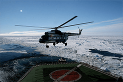 另外航行期间船长会根据实时的天气、冰况以及多年丰富的专业探险经验安排乘客搭乘直升机空中俯瞰破冰船勇往直前的壮观景象,大约飞行时间为20分钟,直升机绕船飞行几圈,并做一些悬停等动作;或飞跃破冰船,降落在冰雪覆盖的极地冰面上;或登陆法兰士约瑟夫地群岛中的部分岛屿,观赏拍摄北极冰川、北极生物、探险遗址等等,一般每次会在岛上停留大约一到两个小时,单程飞行时间针对距离不同的岛屿不等,一般10到20分钟。