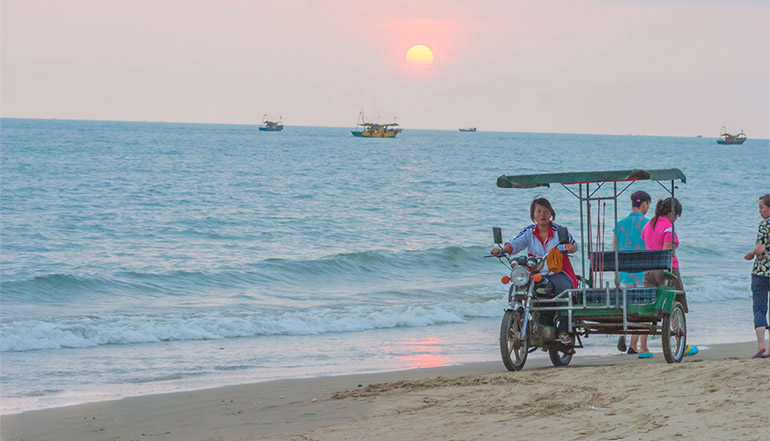 在碧海蓝天下赤脚走过白色的沙滩,迎面而来的是咸咸的海风与椰子树的清香;街边三三两两的小商贩挑着热带水果叫卖,夜晚的海边扬起驻唱歌手的音符和饕餮海鲜大餐。