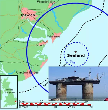 2. 位于怒涛塔海上平台的西兰公国(Principality of Sealand)