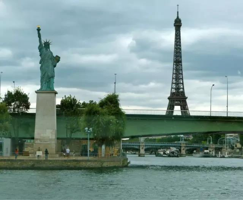 人们都知道纽约有当年法国赠给美国的自由女神像,却多不晓得巴黎也有自由女神像,恰与美国的遥相呼应,象征着美法之间的情谊。