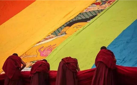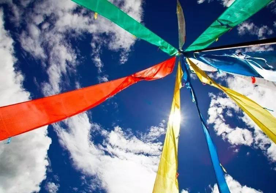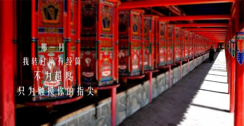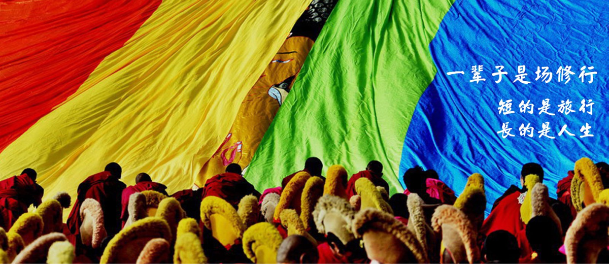 一抹红僧衣,一串橙珍珠,一粒紫菩提,一碗黄酥油,一汪蓝湖泊,一片绿草原,一座青神山,一群黑牦牛,一条白哈达,一个藏江南。