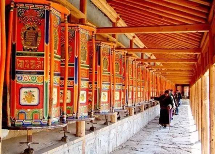 寺院外墙由2000多个转经筒组成,堪称世上最长的转经廊。
