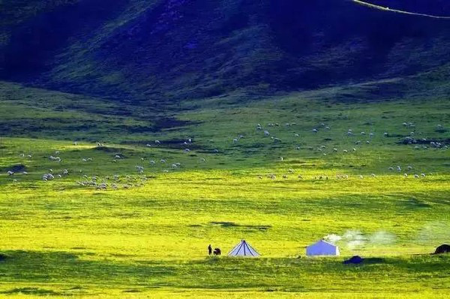 4000多牧民霸占了整整一大片草原,想想就幸福得要死。七八九月的时间,葱郁的草原上星星点点地全是色泽鲜明的藏包帐篷。