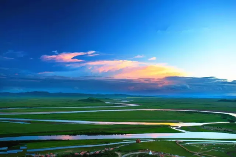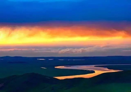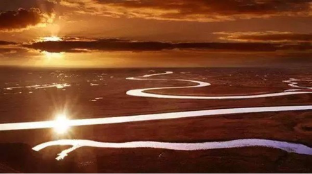 日落最美,夕阳滚落下山,整个河谷变成了一片金黄,片片波鳞,似一条闪烁的金色缎带,蜿蜒在天地间,有种缠绵几千年的感觉。