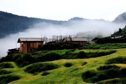 四村一寺坐落城中,群峰环绕,梯田层叠,民居鳞次。晨有云雾曼,晚有夕阳晖,伊甸园也不过如此。